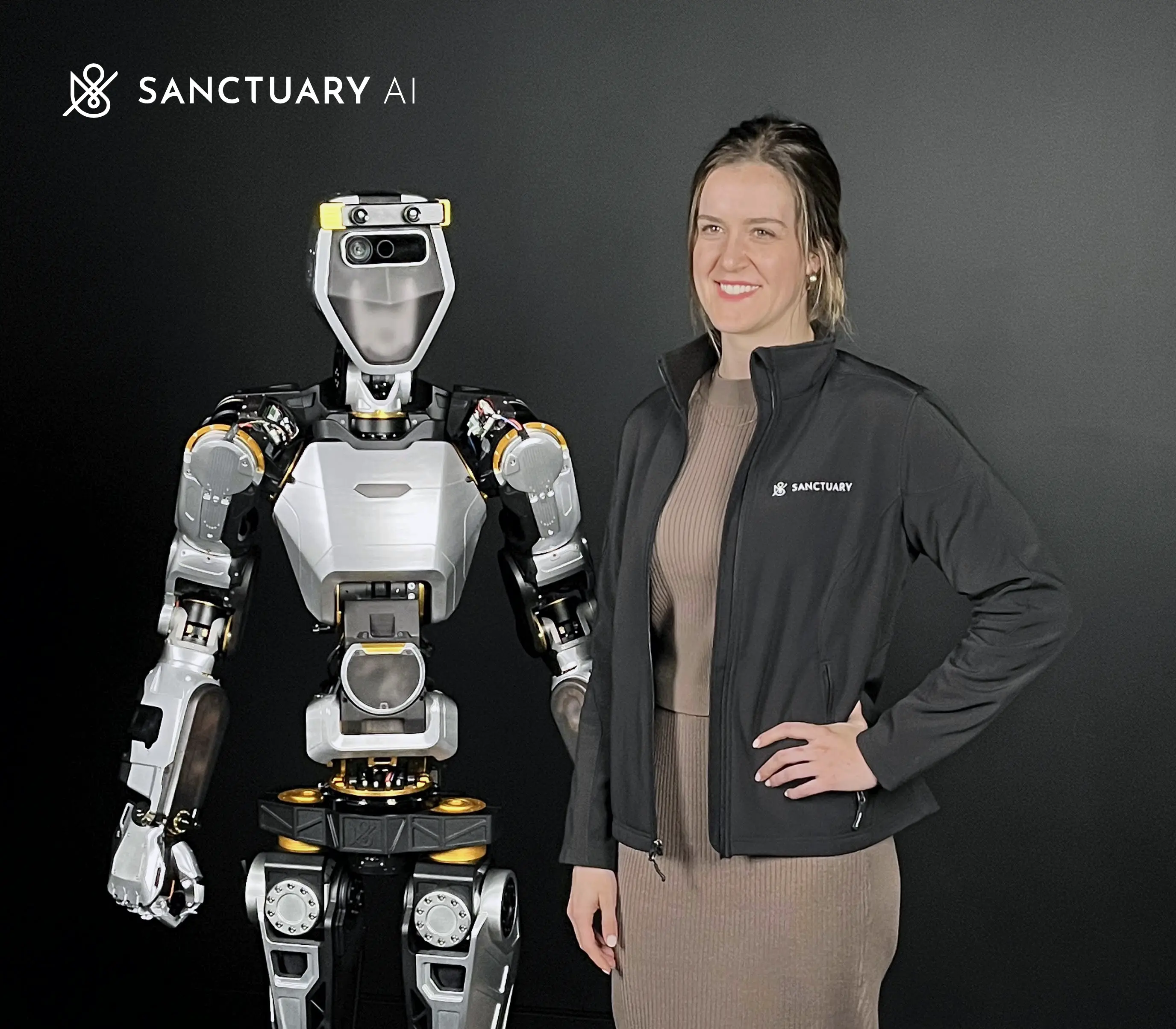 Adrianne Erdman and a humanoid robot at Sanctuary AI